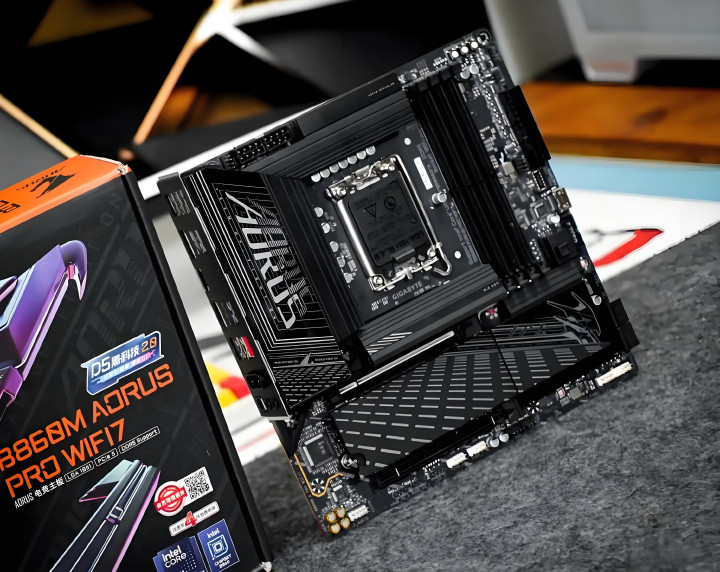 我选择的是定位于针对于极限电竞玩家的技嘉 B860M AORUS PRO WIFI7 电竞雕主板,采用M-ATX板型与8层PCB设计,适配Intel Core Ultra系列处理器的LGA 1851插槽,是兼顾性能与兼容性的中端优选。